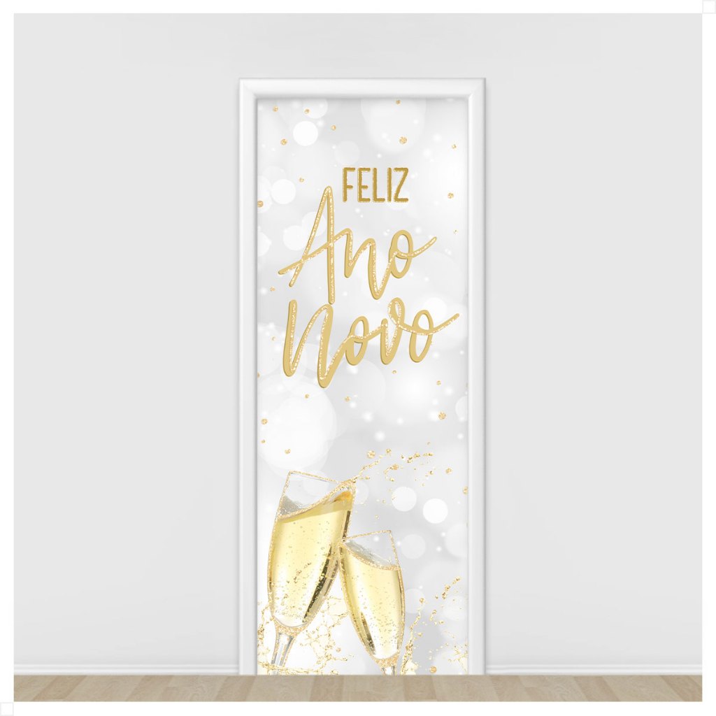 Kit 2 Capas de Porta Natal + Ano Novo Em Tecido Painel Veste Porta Decorativo Sublimado 0,80x2,10m