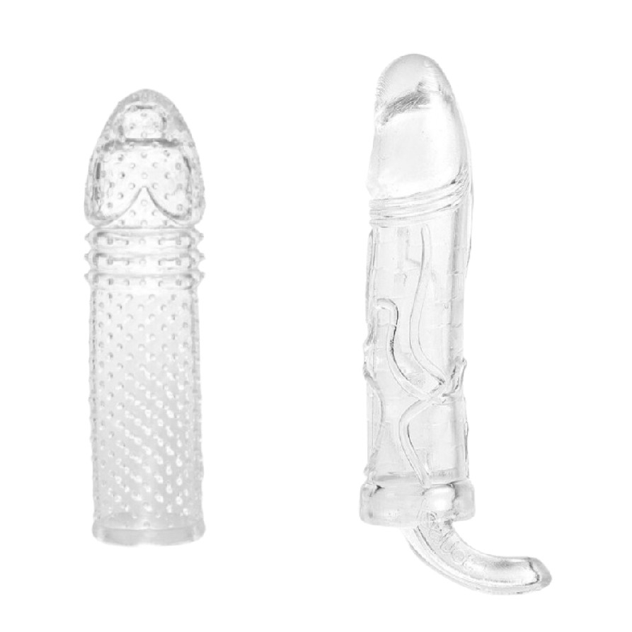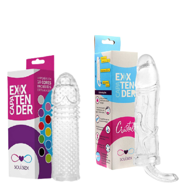 Sejam bem vindxs a nossa loja! CAIXA SUPER DISCRETA! ENVIO IMEDIATO! DESCRIÇÃO DO ANÚNCIO: Kit contém 02 duas capas penianas transparente em silicone, sendo: 01 Capa Transparente 16cm s/ anel para escroto 01 Capa Transparente Modelo Crystal de silicone com anel para escroto Capa Extender, possui saliências por todo o corpo, três anéis logo abaixo da glande para uma estimulação maior na hora da penetração, além de um anel prolongador na base. Reproduzida em TPR, adequa-se perfeitamente ao seu pênis não importando o tamanho devido à sua flexibilidade e elasticidade, também permitindo utilizar em um vibrador, onde na ponta contém um volume para obter maior comprimento. Medida: 15cm de comprimento por 4cm de diâmetro Composição: TPR atóxico. Recomendações: É recomendado o uso de lubrificantes à base de água. Cuidados: Suspenda em caso de irritação. Lavar antes e após o uso com água e sabão neutro. Algumas das embalagens podem sofrer alterações pelo fornecedor, sem haver tempo hábil para ser atualizado em nosso site, porém, garantimos que as características do produto (quantidade, peso, matéria prima e funções) não serão alteradas.
