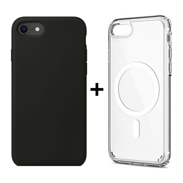 Kit 2 Capinhas de Iphone 7/8 Normal e Iphone SE Colorida e MagSafe Carregamento Indução Transparente Fechada na Lateral