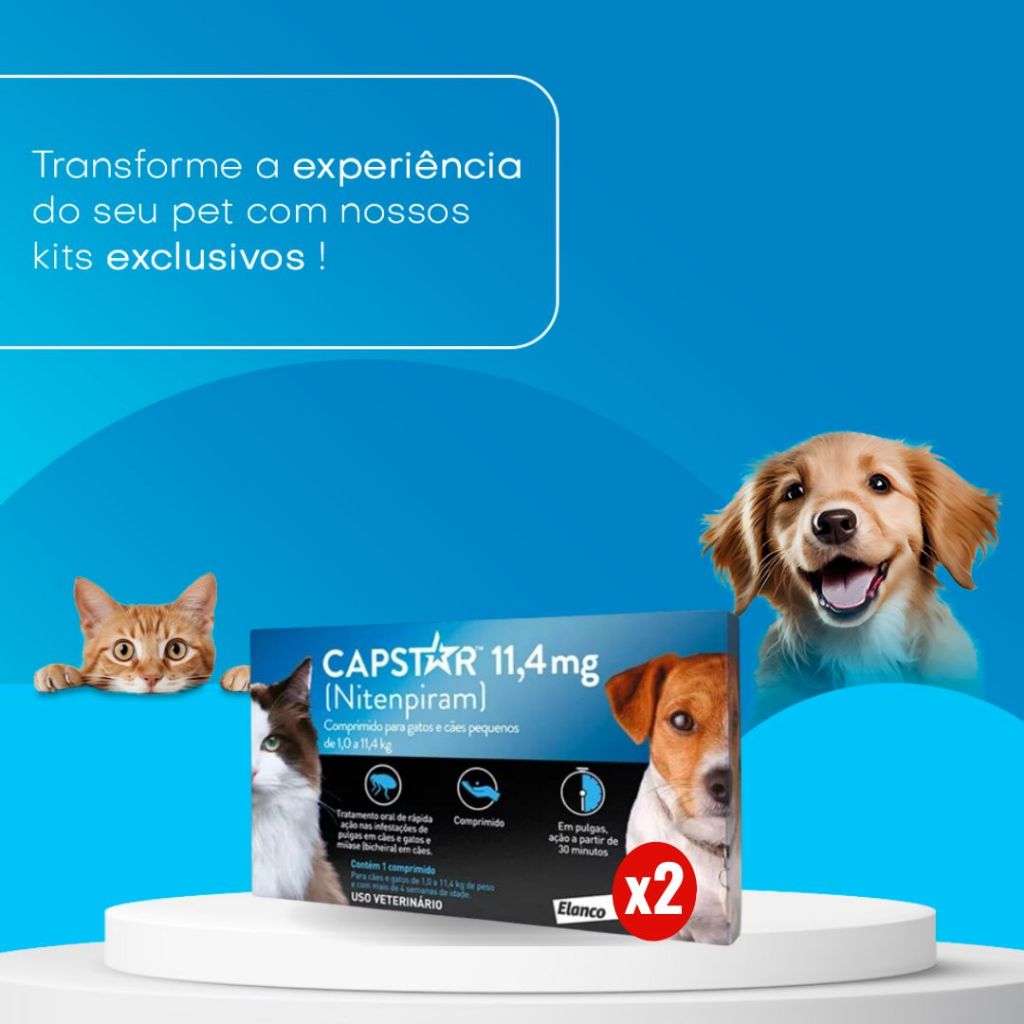 | Kit 2 Capstar Antipulgas 11mg 1 Comprimido para Cães Gatos de até 1... este produto | R$ 44,64 | 49% | 4.9/5 | 10 |