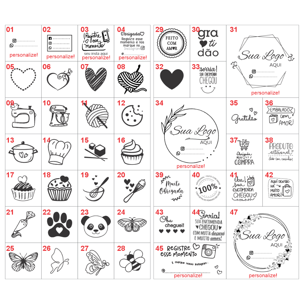 2 Carimbos Personalizados Cada Um do jeito que você quiser! + NOS MANDE SUA LOGO / PERSONALIZAÇÃO DIRETAMENTE NO CHAT. Se seu arquivo não for permitido nós lhe informaremos por lá outra forma de encaminhá-los. + Carimbo para sacolas, caixas, embalagens em geral! + Pode ser usado em qualquer superfície reta/material plano + Acompanha Carimbeira e Tinta - Esse anúncio se aplica para qualquer formato ou proporção de logo. - Você pode enviar ou escolher entre os modelos das fotos do anúncio uma personalização diferente para cada carimbo! - Você poderá usar esse carimbo para isopor, plástico, metal, vidro, tecido pois ele aceita qualquer tipo de tinta. Para isso é preciso uma almofada e tinta compatíveis com o material que será carimbado. ------------------------------------------------------------------------------- O nosso anúncio acompanha: * Um carimbo de 10cm no seu lado maior. Se a logo for quadrada ou redonda, o carimbo ficará 10x10cm. Se for retangular, o lado maior dele ficará com 10cm e o outro lado ficará proporcionalmente menor; * Um carimbo de 5cm no seu lado maior, seguindo a mesma lógica descrita acima; * Uma carimbeira que comporta tranquilamente os carimbos do anúncio; * Uma tinta para papéis/kraft OU uma tinta para plástico/isopor OU duas tintas para tecido, a depender da variação escolhida ao adicionar o produto no seu carrinho. Sobre as cores das tintas temos várias opções. Por padrão nesse anúncio vai a tinta preta, mas podemos trocar pra ti. Nos mande essa dúvida no chat que lhe auxiliaremos. Se sua logo/arte/personalização não for quadrada ou não tiver os dois lados com o mesmo tamanho, o maior lado dela terá a medida do anúncio e o outro lado ficará proporcionalmente menor pra não distorcer/esticar a arte. ------------------------------------------------------------------------------- Para a limpeza dos carimbos recomendamos a utilização de escovas de dente antigas e água para TINTA DE PAPEL E TECIDO, ou álcool para TINTA DE PLÁSTICO, pois os mesmos são suficientes para a limpeza do carimbo. Em seguida, seque bem. -------------------------------------------------------------------------------------