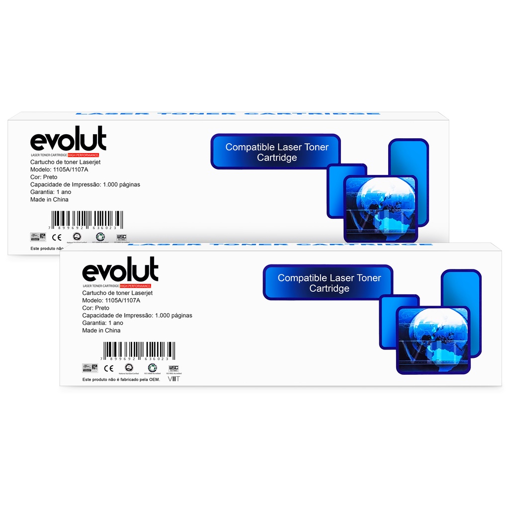 Kit 2 Cartuchos Toner 105A W1105A Compatível Com Chip Preto 1.000págs Evolut Para Laser 107a, 107w, MFP 135a 135w 137fnw