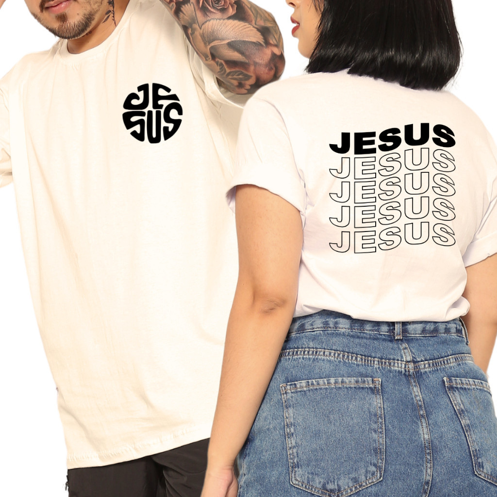 Kit 2 Casal Camisetas Streetwear Jesus Loves YouFrase Evangélica