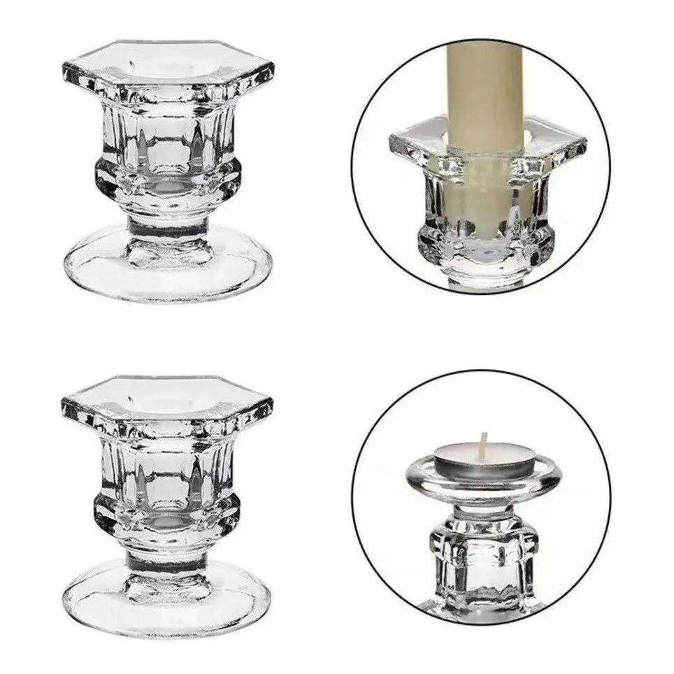 Kit 2 Castiçal De Vidro Porta Vela Enfeite Decoração Veneza