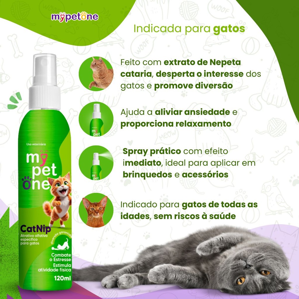 Kit 2 Catnip Liquido Spray Erva-Do-Gato - Mypetone 120 Ml