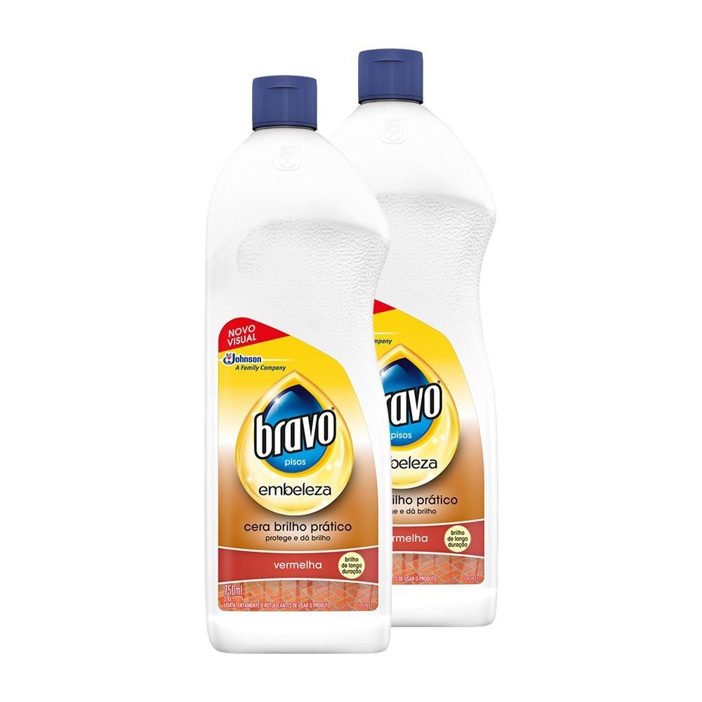 Kit 2 Cera Líquida Bravo Brilho Prático Autobrilho Vermelha 750ml
