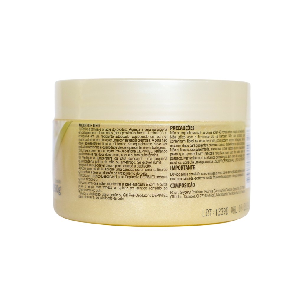 Oii, é um prazer ter você aqui! Quer uma pele lisinha e sem pelos no buço com praticidade e eficácia? O Kit 2 Ceras Depilatórias Pérola Para Buço Facial Depimiel é a escolha perfeita para conquistar resultados de salão no conforto da sua casa. Veja por que ele é ideal para você: O que ela é: - Kit 2 Ceras Depilatórias Para Buço Facial. - Marca: Depimiel. - Contém: 2 Ceras Depilatórias com 250g. - Produto Profissional. - Cera Perolada. O que ela tem: - Óleo de Macadêmia. - Baixa Temperatura. - Secagem Rápida. - Consistência Cremosa. - Perfume Suave. - Alta Aderência. O que ela faz: - Hidrata. - Suaviza a pele. - Revitaliza a pele. - Ameniza a dor e o vermelhidão. Área de uso: - Buço - Sobrancelhas. - Nariz. Como usar: - Abra a cera e aqueça na própria embalagem em micro-ondas por 1 minuto, ou coloque-a em um recipiente adequado, para banho-maria ou termocera até obter uma consistência cremosa. - Limpe a pele com loção Pré-Depilatória. - Verifique a temperatura da cera. - Com uma espátula, aplique uma camada fina sobre a pele em direção ao crescimento do pelo. - Coloque o lenço depilatório sobre a cera e o pressione. - Com uma das mãos mantenha a pele esticada e com a outra puxe o lenço com firmeza e rapidez em sentido contrário ao crescimento do pelo. IMPORTANTE: - Não indicado aplicar em: Regiões Faciais: Barba. Regiões Íntimas Sensíveis. - Não é recomendado para gestantes, crianças, idosos, diabéticos ou após cirurgias. Com o Kit 2 Ceras Depilatórias Pérola Para Buço Facial Depimiel, você tem praticidade, eficiência e cuidado com a pele em um só produto. Não espere mais para realçar sua beleza com facilidade e segurança. Garanta já o seu e sinta a diferença! Surgiu alguma dúvida? Entre em contato com a gente! Boas Compras :)