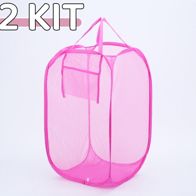 KIT 2 Cesto De Brinquedos 40x40x70cm Rosa Promoção Dobrável Para Roupas e Brinquedos Cesto