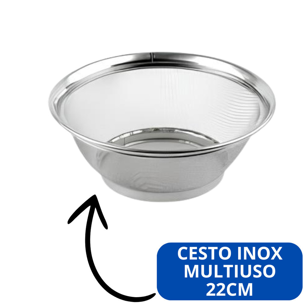 | Kit 2 Cestos Escorredores Inox 22cm e 28cm Multiuso Para Lavar Alim... este produto | R$ 19,99 | 63% | 4.8/5 | — |