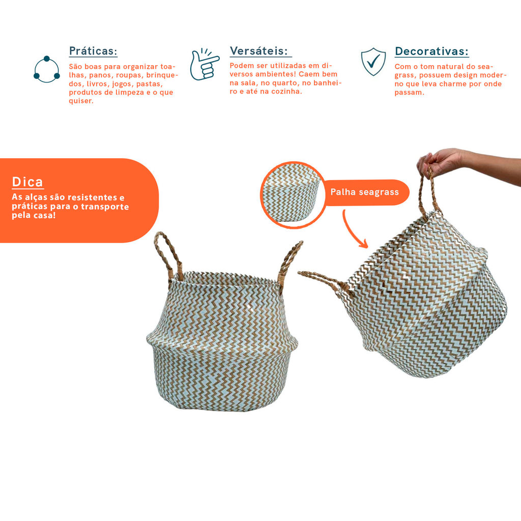 Kit 2 cestos organizadores multiuso decorativo branco seagrass - Oikos