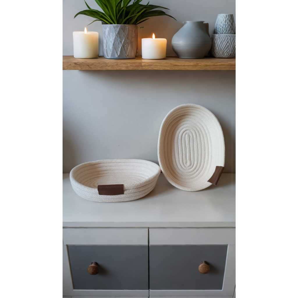 Kit 2 Cestos Ovais de Corda de Algodão Decorativos e Armazenamento Raízes Boho