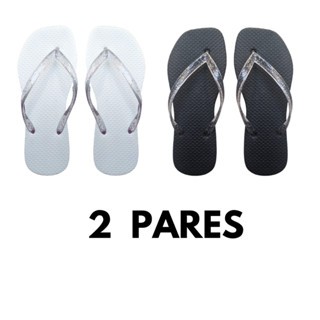 Kit 2 Chinelos Feminino Bico Quadrado de Borracha Com Tira de Glitter Transparente