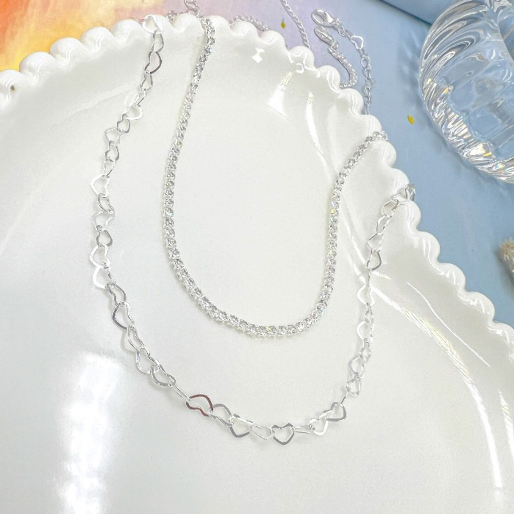 KIT 2 Choker Colar de bola Tifanny delicado + Colar Com Cristal banhado a prata 925
