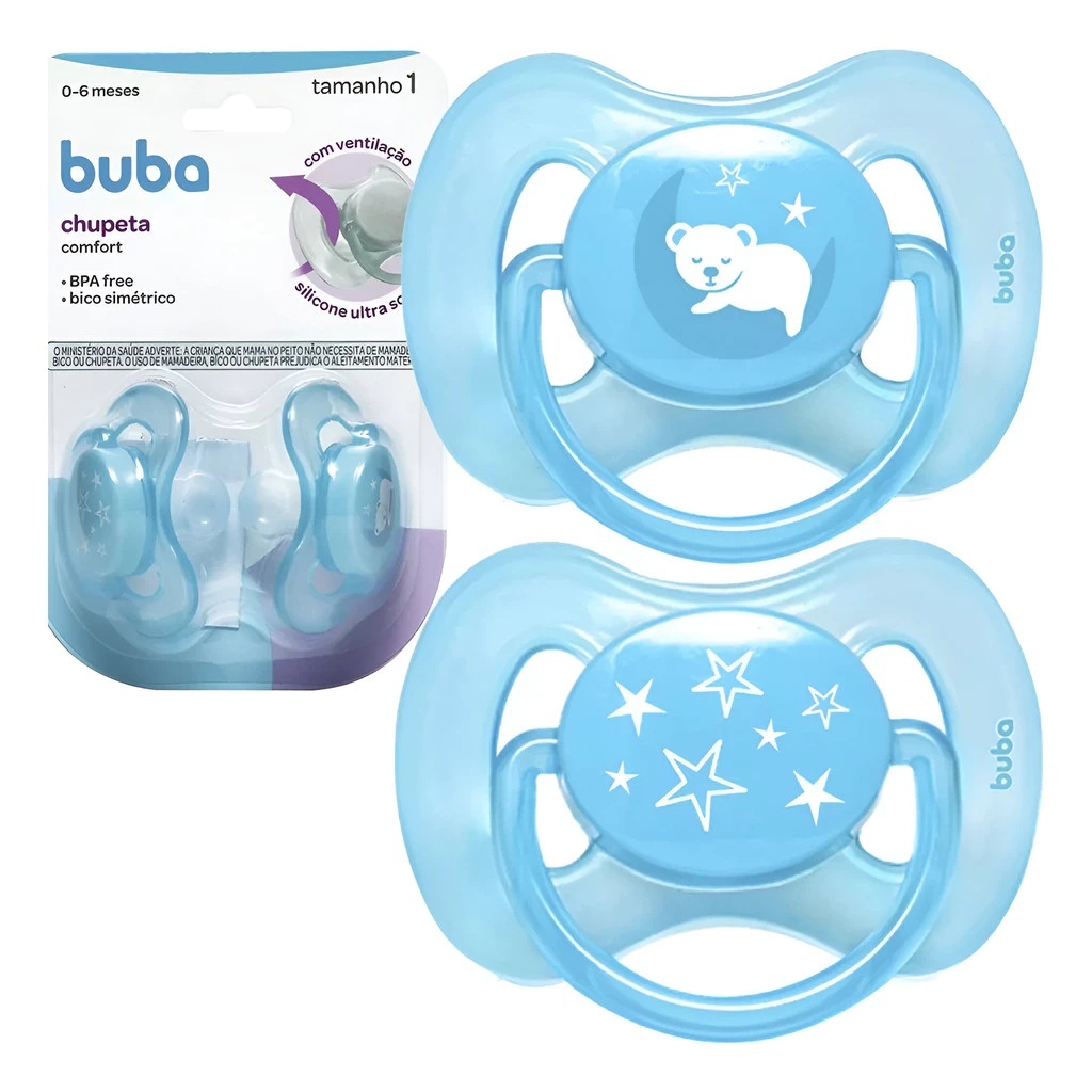 Kit 2 Chupetas Buba Comfort Ventilação Bico Silicone Tam 1 0-6M