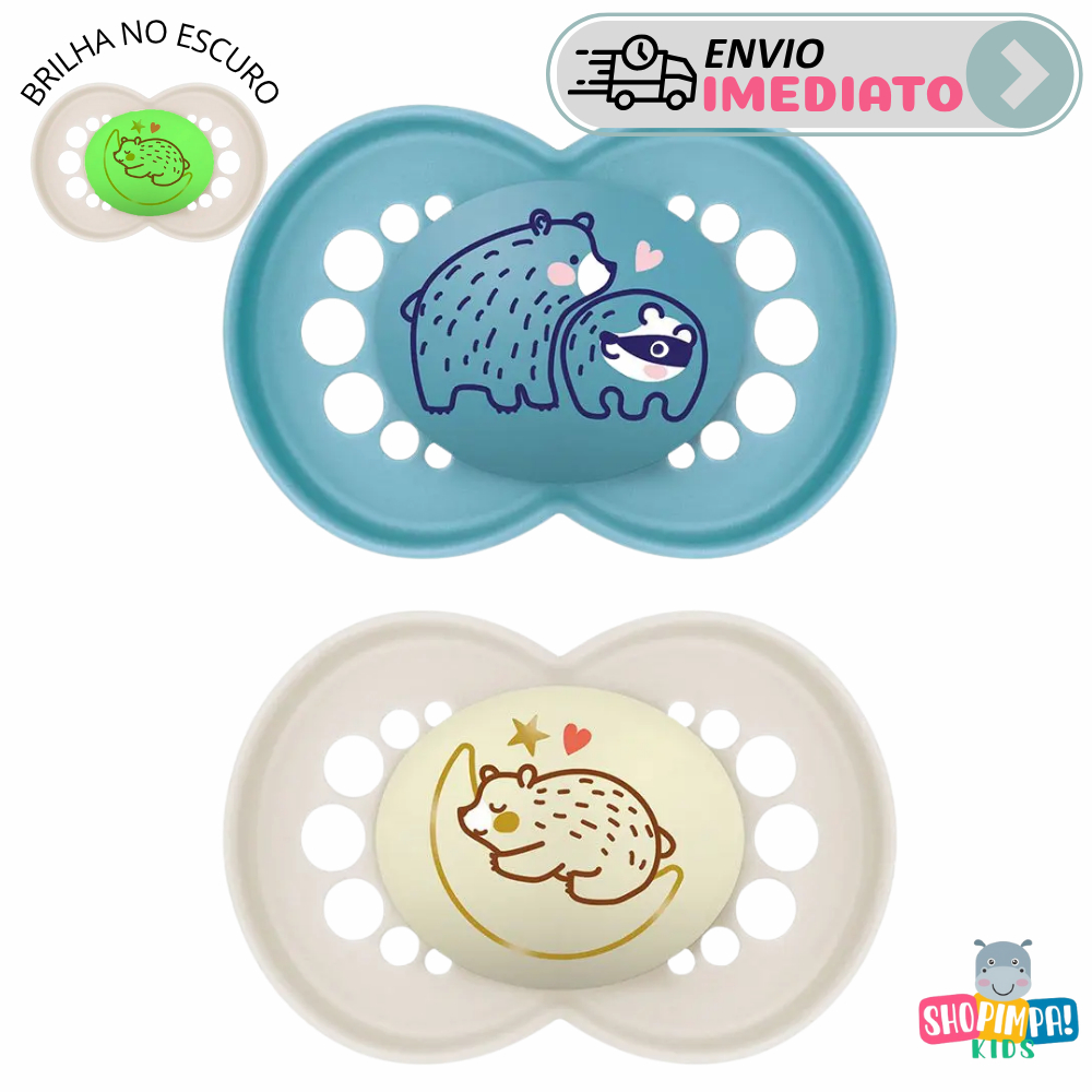 Kit 2 Chupetas Mam Day & Night Brilha no Escuro Silicone 16+ Meses | BPA Free | Original