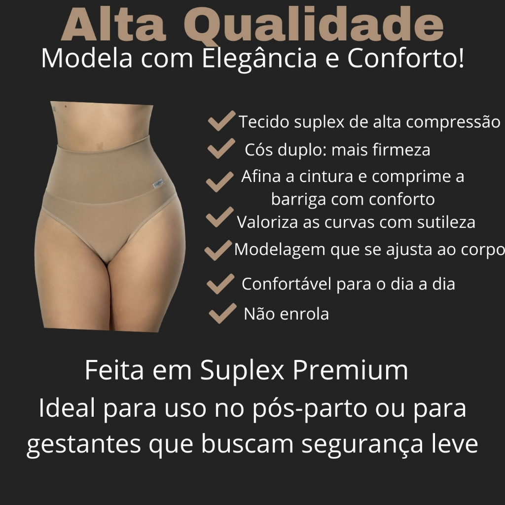 kit 2 Cintas Suplex Alta Compressão Cós Duplo Pós-Parto Gestante Não Enrola