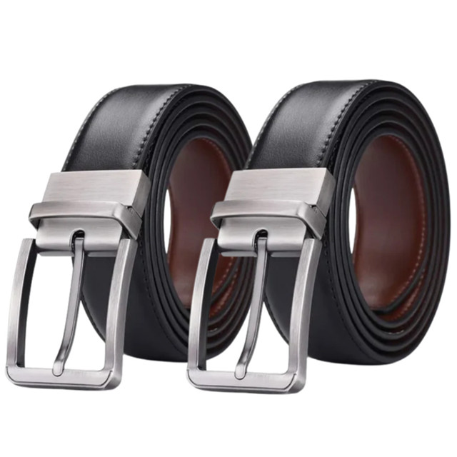 Kit 2 Cinto Masculino Em Couro Sintético Dupla Face Slim Otimizado e Reforçado