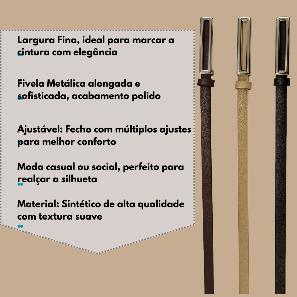 Kit 2 Cintos Alfaiataria Plus Size Social Elegante Versátil Casual com Fivela Dourada
