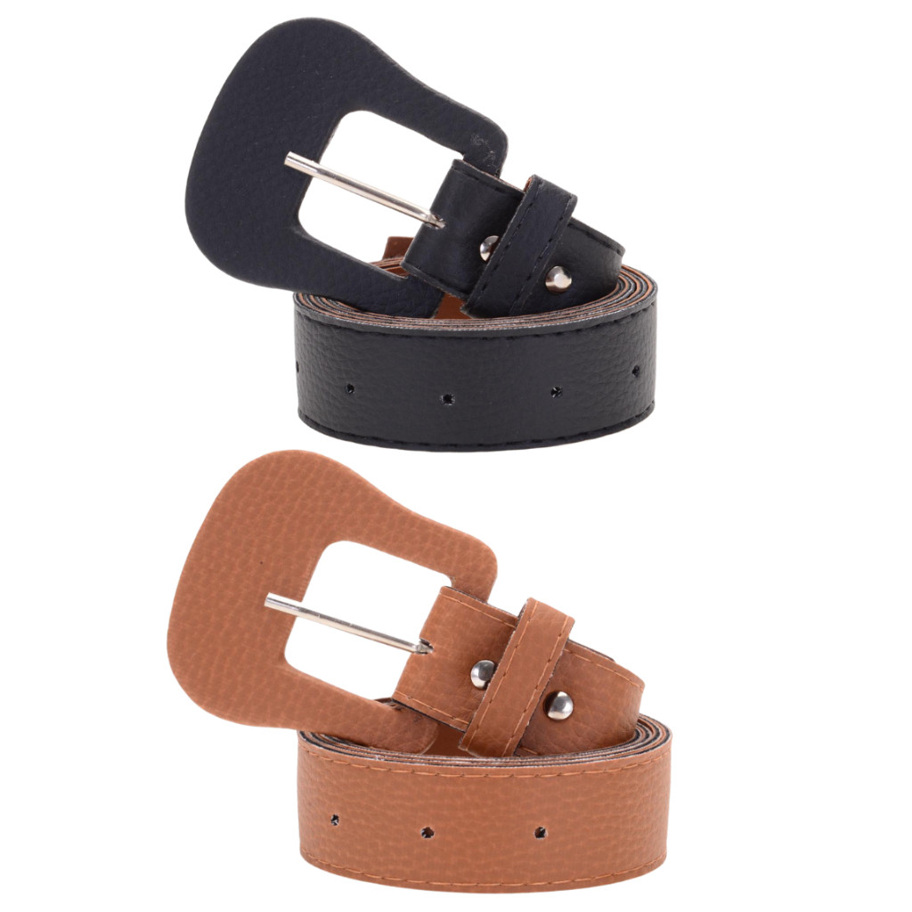 Kit 2 Cintos Feminino Fivela Encapada Modelo Violão Pespontado Cinto Reforçado Mulheres Minimalista
