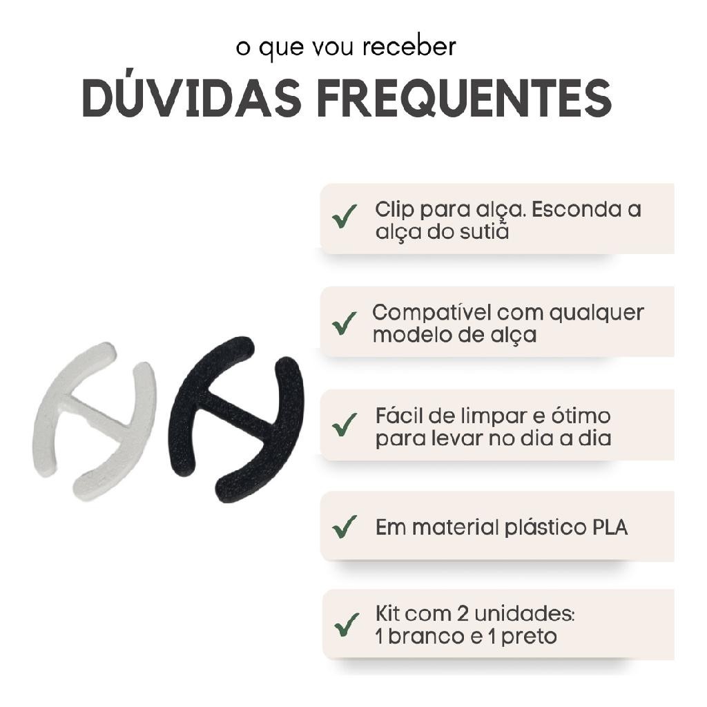 ***** ATENÇÃO!! APROVEITE E TENHA SEU PRODUTO COM O ENVIO MAIS RÁPIDO!! - FLEX SÃO PAULO E GRANDE SÃO PAULO: COMPRANDO ATÉ ÀS 12h00 RECEBE NO MESMO DIA!! - COLETA: COMPRANDO ATÉ ÀS 15h00 ENVIAMOS NO MESMO DIA!! ***** Clip para Prender Alça de Sutiã - Kit com 2 unidades (1 branco e 1 preto). Mantenha-se discreta e confortável com nosso clip para prender alça de sutiã! Projetado para evitar que as alças do sutiã apareçam em blusas cavadas, este acessório discreto e fácil de usar é a solução perfeita para um visual impecável. Basta prender o clip nas alças do sutiã e desfrutar de uma aparência elegante e sem preocupações. * Medidas: 4,15 cm x 3,45 cm x 1mm * Contém 2 unidades: 1 preta e 1 branca