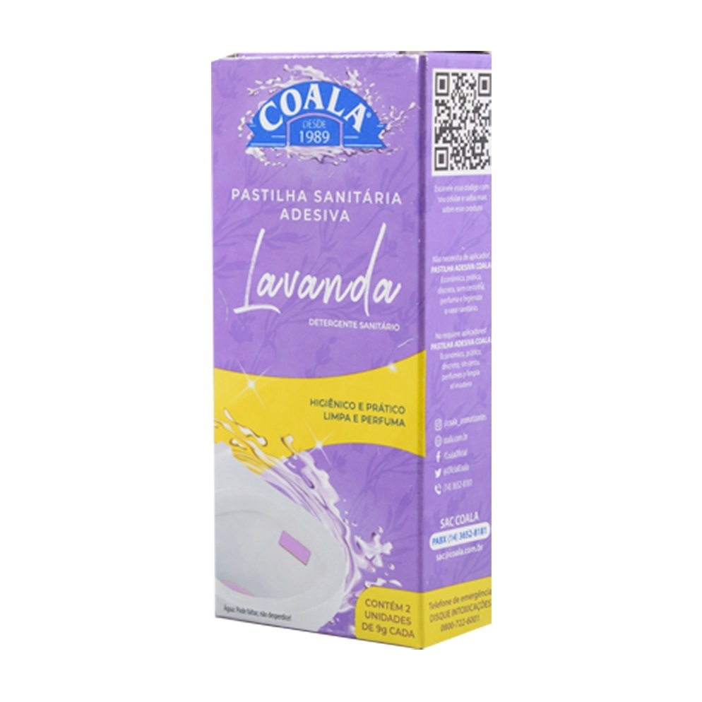 A Pastilha sanitária Coala, limpa e perfuma o ambiente com uma aplicação fácil e rápida. Levando o aroma inconfundível de Coala para seu banheiro. MODO DE USAR Antes da aplicação, a parede interna do vaso deve estar seca. Aperte bem a pastilha adesiva Coala contra a parede do vaso seco, onde o fluxo de água seja maior. INFORMAÇÕES DO PRODUTO: Manter o produto em sua embalagem original, longe de fonte de calor e luz direta.