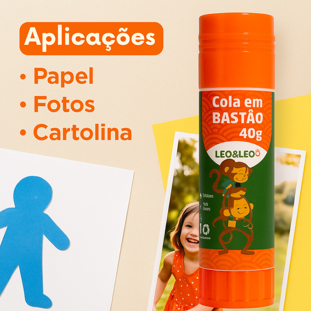 Cola Bastão Leo&Leo – Fixação Forte e Rápida kit com 2 unidades A Cola Bastão Leo&Leo é indicada para colagem de papel, cartolina, fotos e materiais leves, proporcionando fixação rápida e limpa.Sua fórmula exclusiva oferece forte aderência, sendo ideal para uso escolar, escritório e atividades domésticas. Características: -Fixação forte e durável -Fácil aplicação -Tampa com vedação segura -Ideal para papel e superfícies leves -Uso escolar, doméstico e profissional Segurança:Não recomendável para crianças menores de 3 anos por conter peças pequenas. Registro Inmetro: 005342/2019 Indicação de uso: -Escolas -Escritórios -Artesanato -Atividades manuais Benefícios da compra: -Produto original Leo&Leo -Envio rápido -Nota fiscal -Pronta entrega