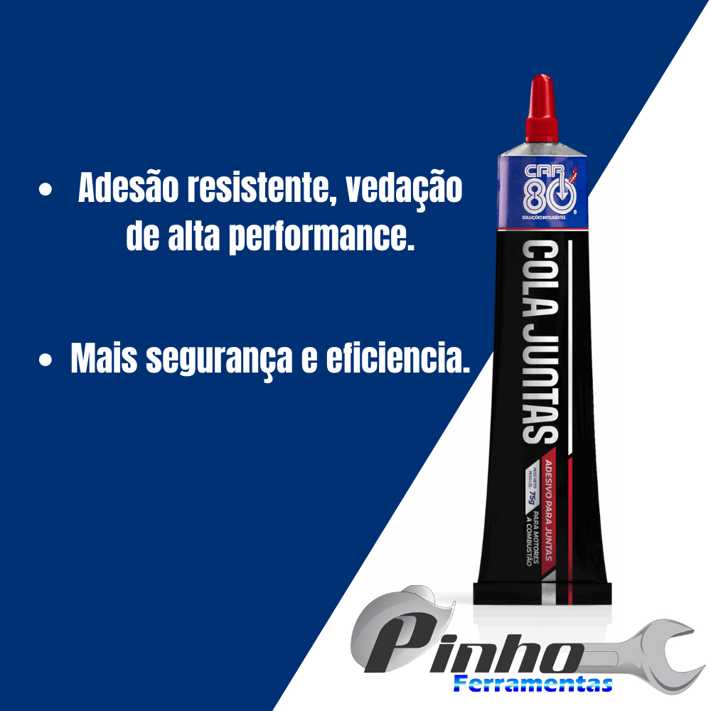 Cola Juntas Adesivo para Juntas Car80 75g Uma solução eficiente para vedação e colagem de juntas de motores diesel, a gasolina, GNV e a álcool, além de juntas de câmbio ou diferenciais de veículos. Proporciona acabamento durável e resistente. É ideal para colagens de materiais como cortiça, borracha nitrílica, papel e outros. APLICAÇÃO: Indicado para a colagem e vedação de juntas de motores a diesel, gasolina e álcool. Aderindo também a diferentes tipos de materiais como: metais, madeiras e alguns plásticos. Dúvidas Frequentes: - O produto é novo e original? Sim, trabalhamos apenas com produtos 100% novos, originais e com nota fiscal. - Qual o prazo de envio? Seu pedido será enviado no mesmo dia após a confirmação do pagamento (exceto sábados, domingos e feriados). - Possuem loja física? Sim, somos a Pinho Diesel e Ferramentas, localizada no CADEG - Rio de Janeiro. Nos acompanhe nas redes sociais ou entre em contato com um de nossos vendedores. - Tem dúvidas sobre o produto ou a compra? Deixe sua pergunta abaixo, e responderemos prontamente. Atenção: - Antes da compra, certifique-se de que está adquirindo a peça correta. - Em caso de dúvidas sobre a aplicação do produto, entre em contato conosco. - Para a manutenção do seu veículo, recomendamos procurar um profissional especializado. - Todos os produtos acompanham nota fiscal e garantia. Linha de Produtos CAR80: - Limpa Ar-Condicionado - Reparador de Pneus - Removedor de Juntas - CAR 80 (Descarbonizante) - Car Lub (Lubrificante Antiferrugem) - Cola Juntas - CAR 80515 - Veda Escape - Limpa Polos de Baterias - Protetor de Polos de Baterias - Desengraxante Spray - Protetor de Correias - Limpa Freios - Silenciador de Freios - Silicone Spray - Graxa Branca de Lítio - Grafite Spray - Vaselina Spray - Car Flush (Limpa Cárter) - Car 8098 Black (Silicone Preto) - Car 8099 Grey (Silicone Cinza) - Car 80A Red (Silicone Vermelho) - Silicone Incolor Multiuso - Car 8004 - Grafite em Pó - Silicone Gel - Car 8040 - Car 8030 - Car 8020