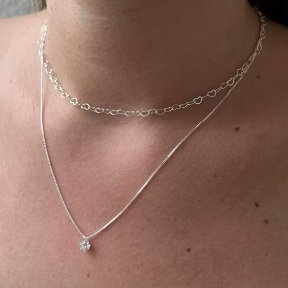 Kit 2 colar ponto de luz + corrente coração prata 925