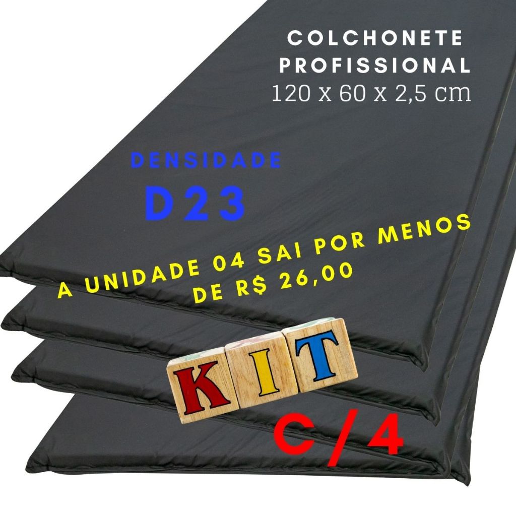 kit com 02 Colchonete com espuma de ótima densidade e capa de "NAPA" medidas 100x60x3 (cm) - fabricado no Brasil, não damos garantia de danos (rasgar a Napa do tecido por exemplo) - o consumidor deverá conferir o produto assim que recebe-lo. Este colchonete de 100x60x3 (cm) de fabricação própria ideal para todo tipo de atividade física entre outras funcionalidades (Yoga, Pet, fisioterapia, alongamentos, uso ao ar livre). OBSERVAÇÃO: A espuma de densidade D23 apresenta uma maciez maior, oferecendo uma sensação mais suave ao toque. No entanto, por ser menos firme, permite maior percepção do contato com o chão. Já a espuma de densidade D28 é mais firme, proporcionando melhor suporte e conforto durante a prática de exercícios, especialmente em atividades que exigem maior estabilidade e absorção de impacto.