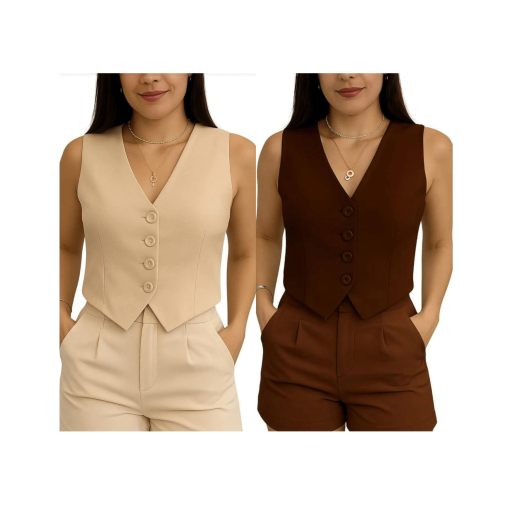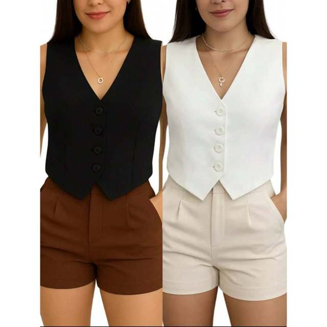 Kit com 2 Coletes Femininos – Algodão ✨ Kit composto por 2 coletes femininos, modernos e elegantes, ideais para compor looks chic, casuais ou sociais. Confeccionados em tecido de algodão, oferecem conforto, ótimo caimento e versatilidade para diversas ocasiões. Modelo com decote em V e fechamento frontal por botões, perfeito para usar sozinho ou sobreposto com camisas, blusas ou vestidos. 🎨 Cores: Disponíveis em várias cores (consultar disponibilidade no momento da compra). 📏 Tabela de Medidas • P: 36 / 38 • M: 38/40 • G: 42 / 44 • GG:44 /46 🧵 Tecido: Algodão 🧼 Indicações de Lavagem: ✔ Lavar à mão ou na máquina em ciclo delicado ✔ Usar sabão neutro ✔ Não usar alvejante ✔ Secar à sombra ✔ Passar em temperatura baixa ✨ Um kit prático, elegante e indispensável no guarda-roupa feminino!