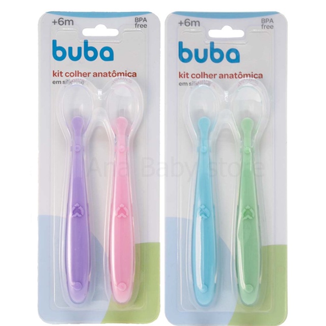 Kit 2 Colher Silicone Anatômica Buba Alimentação Bebê Papinha Introdução Alimentar