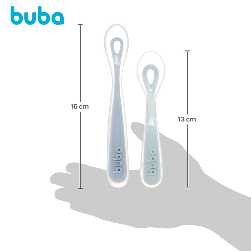 DESCRIÇÃO DO PRODUTO Kit Colheres 2 Estágios da Buba possui uma colher para a introdução alimentar com cabo longo ideal para ser manuseado pelo adulto para alimentar o bebê, e a outra para a autoalimentação, com cabo ergonômico, adequada para as mãozinhas do pequeno, desenvolvendo a sua coordenação motora e autoconfiança. Ambas possuem a ponta macia em silicone suave, perfeita para gengivas delicadas. FASE 1: INTRODUÇÃO ALIMENTAR FASE 2: AUTO ALIMENTAÇÃO CARACTERÍSTICAS TÉCNICAS: Conteúdo da Embalagem: Kit Com 2 Colheres De Silicone Estágio 1 e Estágio 2 Dimensões Aproximadas do Produto: 16 cm x 2 cm x 1 cm (Altura x Largura x Comprimento/Profundidade). Dimensões Aproximadas da Embalagem: 23 cm x 9 cm x 2 cm (Altura x Largura x Comprimento/Profundidade). Material/Composição: Parte Interna 100% Nylon, Parte Externa: 100% Silicone Idade Mínima Recomendada: A partir de 6 meses Marca: Buba Referência: 18830 Outras informações: As cores podem variar entre as imagens mostradas acima e o produto. Imagens meramente ilustrativas. Aviso: As informações e imagens divulgadas são de total responsabilidade do fabricante/fornecedor. Produto lacrado e disponível a pronta entrega para todo Brasil! APROVADO PELO INMETRO