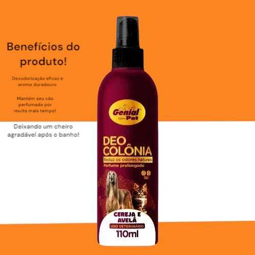 Kit 2 Colônia Cereja e Avelã Banho e Tosa 110ml Perfume Para Cachorro e Gato Genial Pet