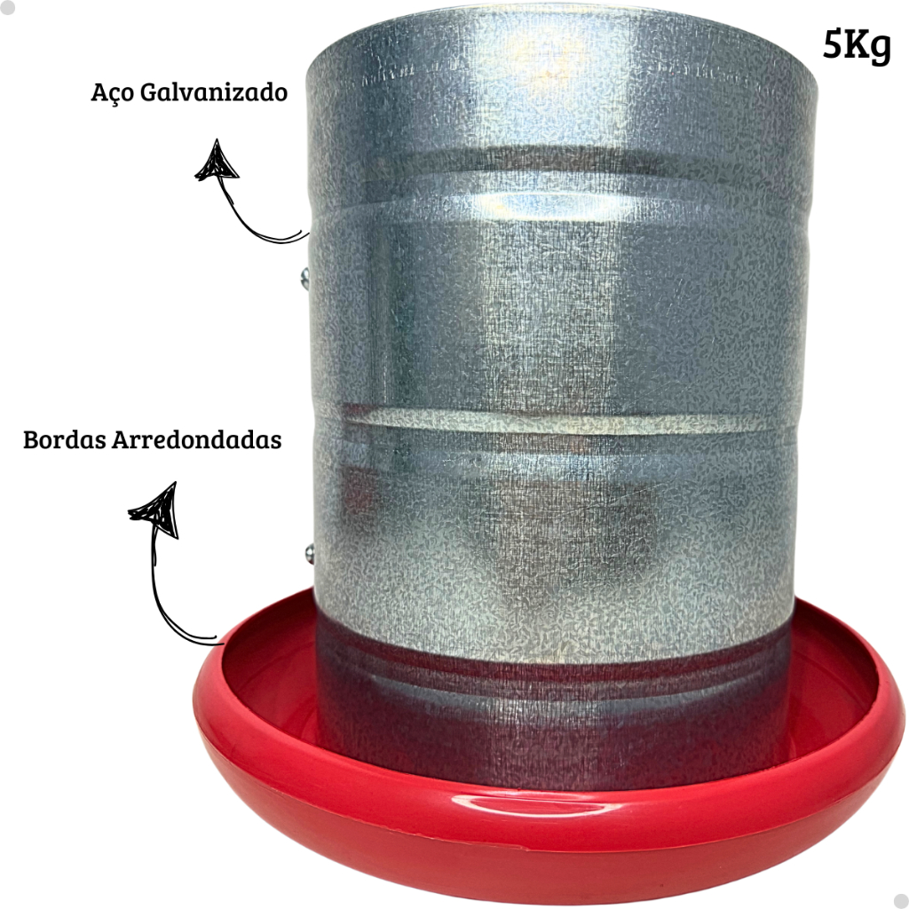 -Se você está procurando um comedouro para aves durável, resistente às intempéries (efeitos do tempo), fácil de limpar, higiênico e conveniente, um comedouro para aves galvanizado é uma boa escolha. -comedouro para aves galvanizado é um tipo de comedouro para aves que é feito de aço galvanizado. O aço galvanizado é um tipo de aço que é revestido com uma camada de zinco, que protege o aço da corrosão. Isso torna o comedouro para aves galvanizado uma escolha durável e resistente para alimentar as aves. -Os comedouros para aves galvanizados são uma boa escolha para quem quer alimentar as aves de forma conveniente e higiênica. Eles são fáceis de limpar e mantêm a comida fresca e seca. Os comedouros para aves galvanizados também são resistentes às intempéries, o que os torna uma boa escolha para uso externo. -Aqui estão alguns dos benefícios de usar um comedouro para aves galvanizado: *Durável: o aço galvanizado é um material durável que é resistente à corrosão. *Resistente às intempéries: os comedouros para aves galvanizados são resistentes às intempéries e podem ser usados externamente. *Fácil de limpar: os comedouros para aves galvanizados são fáceis de limpar e mantêm a comida fresca e seca. *Higiênico: os comedouros para aves galvanizados evitam que as aves entrem em contato com a comida suja, o que pode reduzir o risco de doenças. *Conveniente: os comedouros para aves galvanizados são fáceis de usar e não exigem que você reabasteça a comida com frequência. -COMEDOURO 5 KG. -Conhecido como comedouro suspenso, usado por sitiantes em aviários, tubo galvanizado, base(prato) plástico vermelho. -Características: -Volume 5kg de ração. -Possui regulagem na travessa superior em conjunto com a haste; -O prato com 26 x 26 Cm é injetado com material 100% puro (virgem) PP H 103 com 0,02% "UV" contra raios ultravioletas; -Altura Total 26 Cm; -Fácil acesso das aves ao alimento; -Peso: 630g.