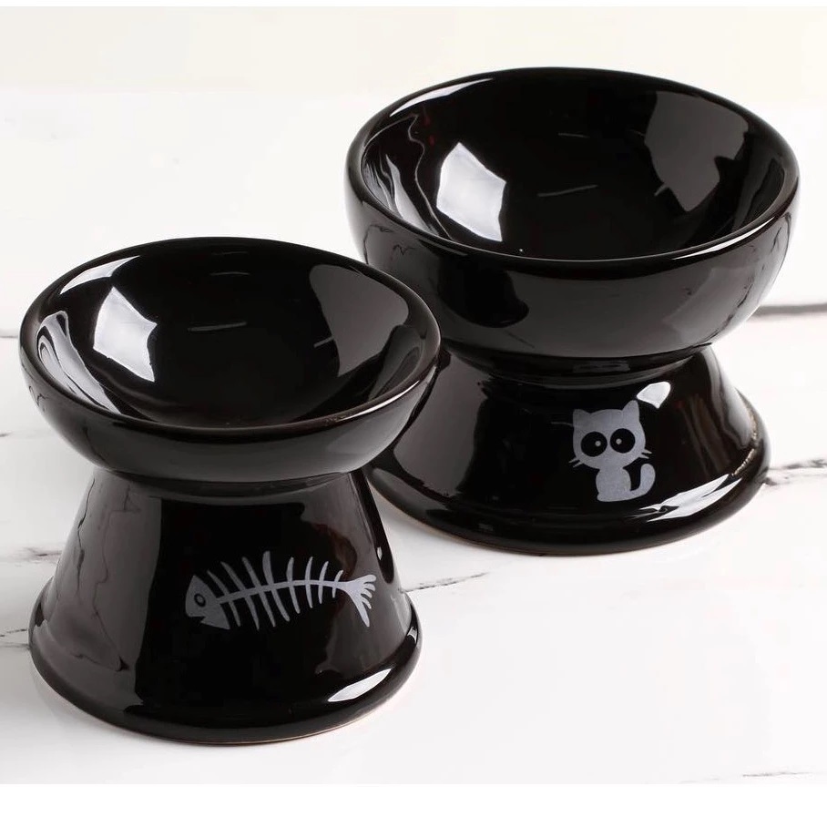Kit 2 Comedouro Higiênico Cerâmica Elevado Gatos Prático Comedouro Bebedouro Cerâmica Pet Cachorros