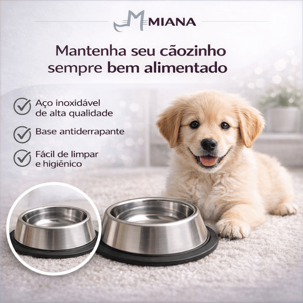 Descrição Comedouro em aço inox para uma alimentação mais higiênica e prática. Durável e fácil de limpar, ideal para a rotina diária de cães e gatos. Material resistente e higiênico Limpeza prática no dia a dia Indicado para água ou ração Uso doméstico versátil Ficha Técnica Produto: Comedouro inox Indicação: Cães e gatos Material: Aço inox Função: Alimentação e hidratação Tamanhos: Variam conforme disponibilidade
