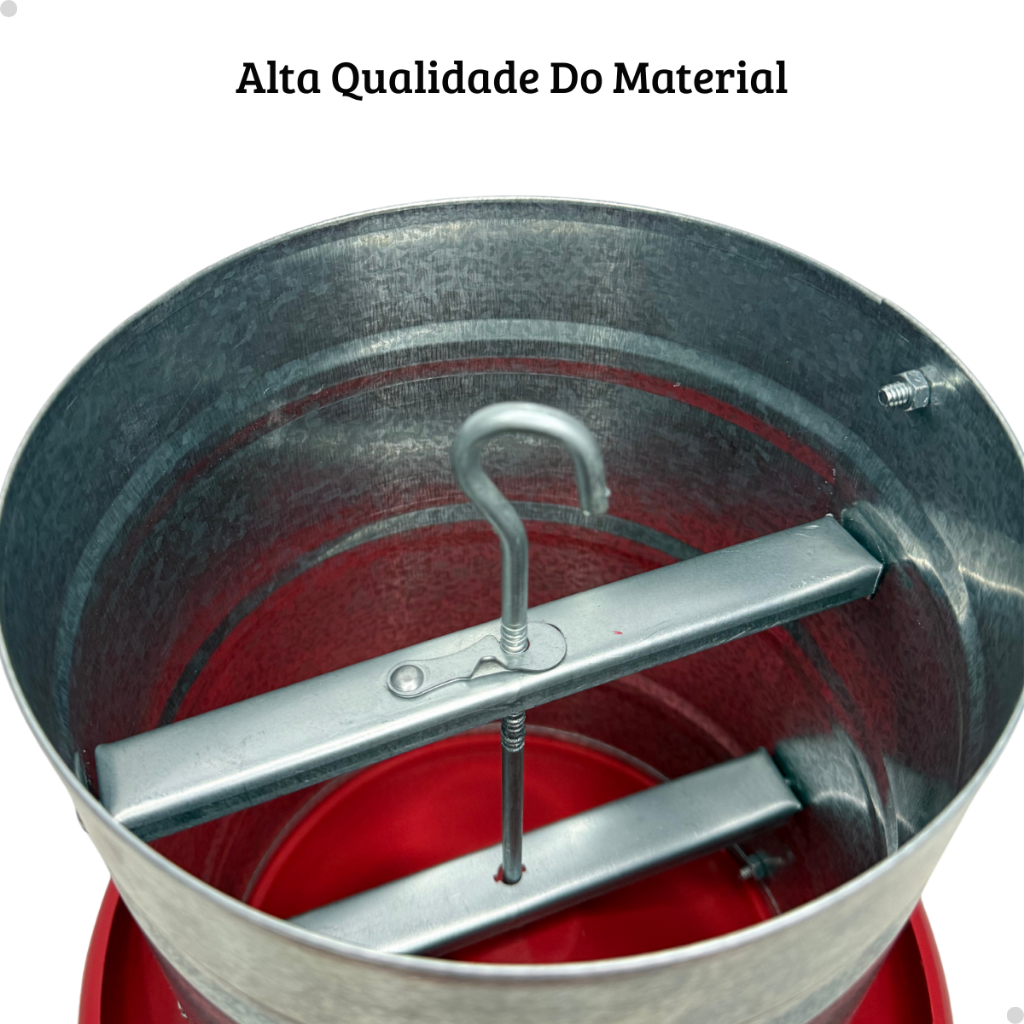-Se você está procurando um comedouro para aves durável, resistente às intempéries (efeitos do tempo), fácil de limpar, higiênico e conveniente, um comedouro para aves galvanizado é uma boa escolha. -comedouro para aves galvanizado é um tipo de comedouro para aves que é feito de aço galvanizado. O aço galvanizado é um tipo de aço que é revestido com uma camada de zinco, que protege o aço da corrosão. Isso torna o comedouro para aves galvanizado uma escolha durável e resistente para alimentar as aves. -Os comedouros para aves galvanizados são uma boa escolha para quem quer alimentar as aves de forma conveniente e higiênica. Eles são fáceis de limpar e mantêm a comida fresca e seca. Os comedouros para aves galvanizados também são resistentes às intempéries, o que os torna uma boa escolha para uso externo. -Aqui estão alguns dos benefícios de usar um comedouro para aves galvanizado: *Durável: o aço galvanizado é um material durável que é resistente à corrosão. *Resistente às intempéries: os comedouros para aves galvanizados são resistentes às intempéries e podem ser usados externamente. *Fácil de limpar: os comedouros para aves galvanizados são fáceis de limpar e mantêm a comida fresca e seca. *Higiênico: os comedouros para aves galvanizados evitam que as aves entrem em contato com a comida suja, o que pode reduzir o risco de doenças. *Conveniente: os comedouros para aves galvanizados são fáceis de usar e não exigem que você reabasteça a comida com frequência. -COMEDOURO 5 KG. -Conhecido como comedouro suspenso, usado por sitiantes em aviários, tubo galvanizado, base(prato) plástico vermelho. -Características: -Volume 5kg de ração. -Possui regulagem na travessa superior em conjunto com a haste; -O prato com 26 x 26 Cm é injetado com material 100% puro (virgem) PP H 103 com 0,02% "UV" contra raios ultravioletas; -Altura Total 26 Cm; -Fácil acesso das aves ao alimento; -Peso: 630g.