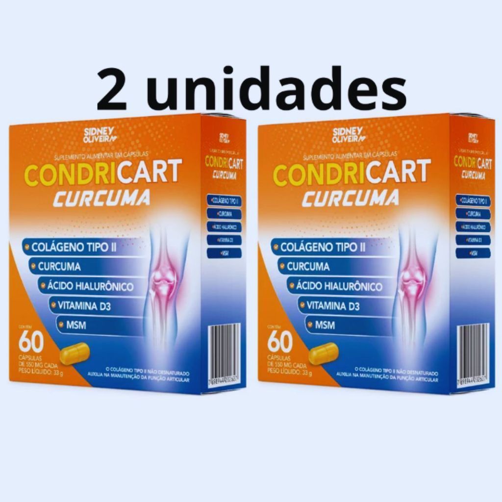 Kit 2 Condricart Colágeno Tipo II + Cúrcuma + Ácido Hialurônico + Vitamina D3 + MSM Cúrcuma 60 cápsulas