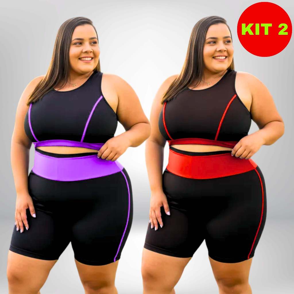 Kit 2 Conjunto Academia Feminino Fitness (top e short) PLUS SIZE CURVE