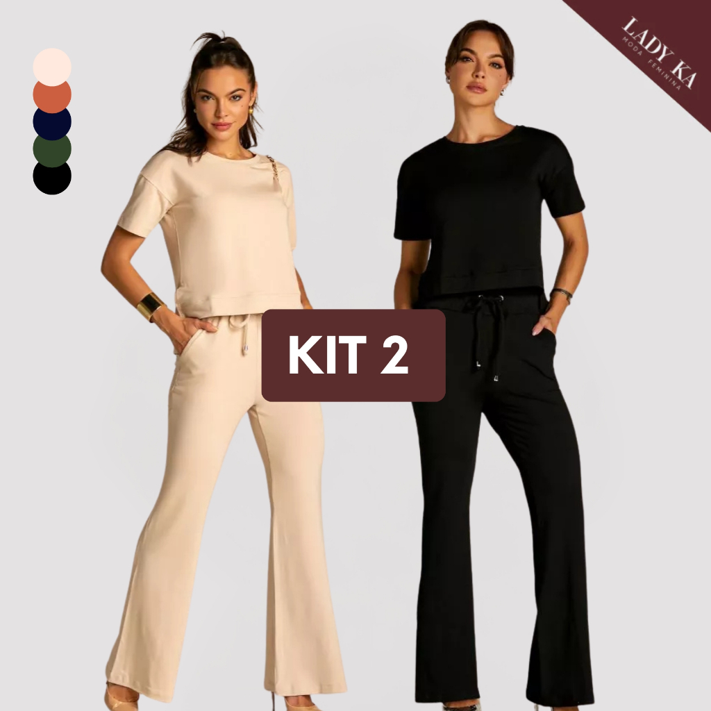 Kit 2 Conjunto de Moletinho Premium Calça Pantalona Blusa Mullet Manga Curta