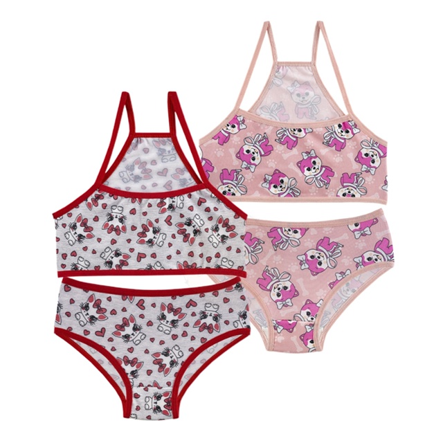 Kit 2 Conjunto Infantil Menina Moça Estampado Microfibra Top e Calcinha