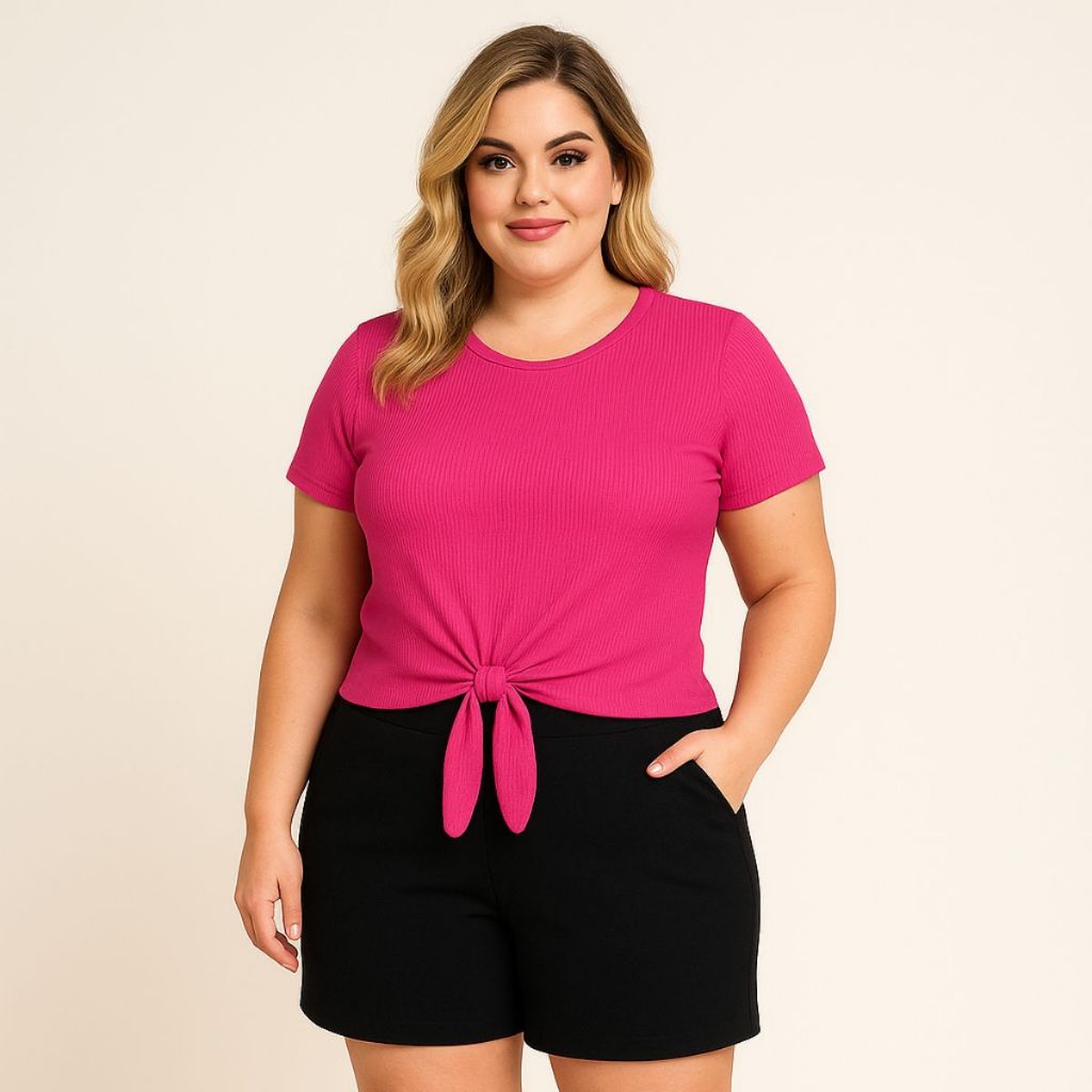 Kit 2 Conjunto Plus Size Feminino de Blusa e Short. Conjunto Bermuda e Blusa Plus Size com Amarração.