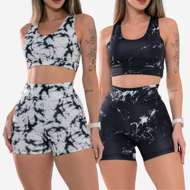 Kit 2 Conjunto Tie Dye Academia Fitness Shortinho Cintura Alta Top Reforçado