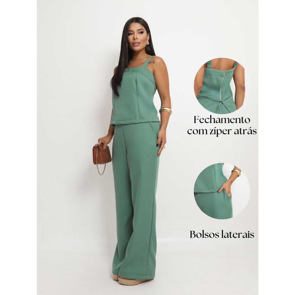 Kit com 2 Conjuntos Lunna – Regata e Calça em Alfaiataria Dobre sua elegância com o Kit Lunna! São 2 conjuntos completos, perfeitos para quem busca praticidade, conforto e estilo em dose dupla. Com design versátil, cada conjunto transita do casual ao sofisticado, atendendo tanto ao dia a dia quanto a ocasiões especiais. Detalhes das peças Calça: frente lisa e elástico na parte de trás, garantindo caimento impecável e conforto. Regata: fechamento em zíper nas costas e pequenos elásticos nas alças, unindo praticidade e delicadeza. Tecido: Alfaiataria New Look (95% Poliéster e 5% Elastano), com toque macio, estrutura sofisticada e flexibilidade. Disponível do P ao G3, valoriza diferentes tipos de corpo com muito charme. Versátil, pode ser usado com salto, rasteira, sandália ou tênis, criando produções para várias ocasiões. Tabela de Medidas Regata P: Busto 84 cm | Cintura 84 cm | Barra 90 cm | Comprimento 40 cm M: Busto 88 cm | Cintura 88 cm | Barra 94 cm | Comprimento 78 cm G: Busto 92 cm | Cintura 92 cm | Barra 98 cm | Comprimento 82 cm GG: Busto 96 cm | Cintura 100 cm | Barra 106 cm | Comprimento 88 cm G1: Busto 100 cm | Cintura 100 cm | Barra 106 cm | Comprimento 92 cm G2: Busto 104 cm | Cintura 104 cm | Barra 110 cm | Comprimento 96 cm G3: Busto 108 cm | Cintura 108 cm | Barra 114 cm | Comprimento 98 cm Calça P: Cintura 66 cm | Quadril 106 cm | Boca barra 54 cm | Comprimento 101cm M: Cintura 70 cm | Quadril 110 cm | Boca barra 56 cm | Comprimento 103cm G: Cintura 74 cm | Quadril 114 cm | Boca barra 58 cm | Comprimento 104,5cm GG: Cintura 78 cm | Quadril 118 cm | Boca barra 60 cm | Comprimento 106,5cm G1: Cintura 82 cm | Quadril 122 cm | Boca barra 62 cm | Comprimento 108cm G2: Cintura 86 cm | Quadril 126 cm | Boca barra 64 cm | Comprimento 110cm G3: Cintura 90 cm | Quadril 130 cm | Boca barra 66 cm | Comprimento 111,5cm