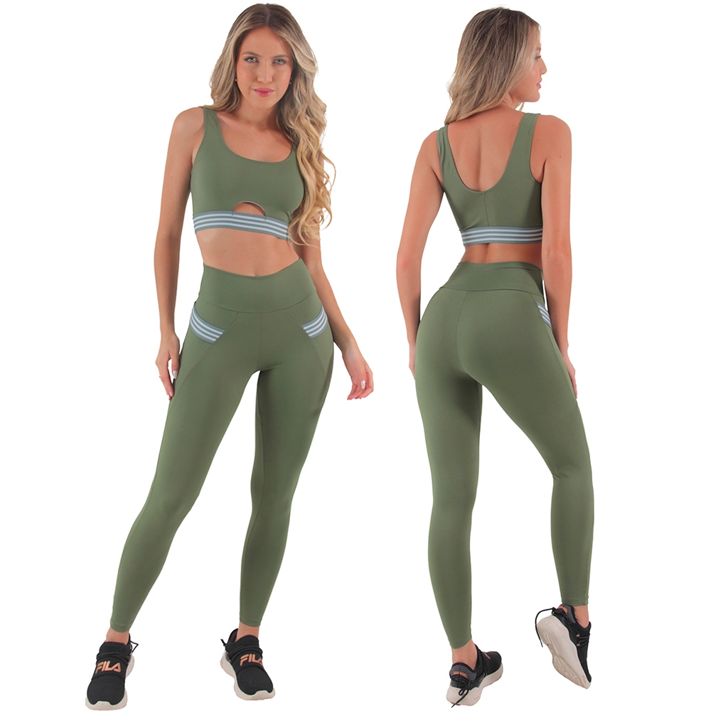 Kit 2 Conjuntos Fitness Feminino Poliamida com Bolsos, tecido de poliamida com excelente elasticidade. Tamanho P veste manequim 34 Tamanho M veste manequim 36/38 Tamanho G veste manequim 40/42 Tamanho GG veste manequim 44/46 Composição: 85% poliamida 15% elastano