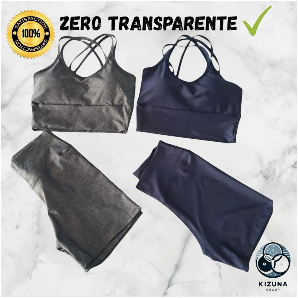 Kit 2 Conjuntos Fitness Feminino Top e Short | Bojo Removível | Zero Transparente