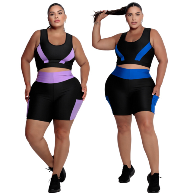 Kit 2 conjuntos Fitness PLUS SIZE E SLIM Top + Short com bolso G ao EXGG Modelo Curves feminino