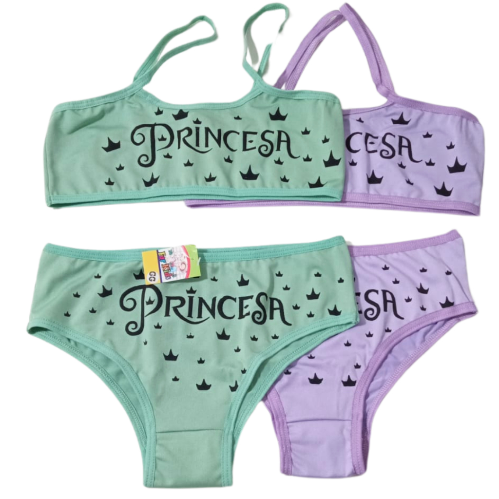 Kit 2 Conjuntos Infantil Feminino Calcinha e Top Princesa Microfibra Romantic 4 a 12 anos