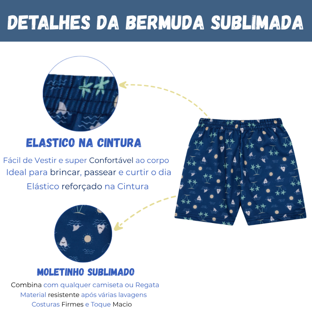 Bem vindo a Sonho de Brincar Encante-se com esse conjunto infantil cheio de charme e conforto! A camiseta é confeccionada em meia malha premium 100% algodão, garantindo toque suave, respirabilidade e conforto térmico para os dias mais quentes. Com acabamento reforçado na gola e costuras que mantêm o formato mesmo após várias lavagens. Acompanha bermuda em Moletinho Sublimada leve, com estampa divertida em sublimação e elástico confortável na cintura, que permite total liberdade de movimentos durante as brincadeiras. É a combinação perfeita entre estilo, qualidade e conforto, ideal para o dia a dia, passeios ou momentos de diversão! Detalhes que fazem diferença: Camiseta em meia malha premium 100% algodão Bermuda em Moletinho leve e macio Estampa divertida de ursinhos Modelagem confortável e moderna Ideal para dias quentes Fácil de lavar e com secagem rápida Cores e formato que se mantêm após várias lavagens Tabela de Medidas do Conjunto Camiseta: Tamanho 2 – Largura 27 cm / Comprimento 37 cm Tamanho 3 – Largura 29 cm / Comprimento 40 cm Tamanho 4 – Largura 31 cm / Comprimento 44 cm Tamanho 6 – Largura 34 cm / Comprimento 47 cm Tamanho 8 – Largura 36 cm / Comprimento 51 cm Bermuda: Tamanho 2 – Largura 22 cm / Comprimento 26 cm Tamanho 3 – Largura 24 cm / Comprimento 28 cm Tamanho 4 – Largura 26 cm / Comprimento 30 cm Tamanho 6 – Largura 27 cm / Comprimento 33 cm Tamanho 8 – Largura 28 cm / Comprimento 36 cm DICA IMPORTANTE! Pegue uma Camiseta que seu menino adora, meça em uma superfície reta e compare com nossa tabela. Assim, o look novo vai vestir lindo e sem erro! Ficou com alguma duvida ? Entre em contato com o nosso time via Chat