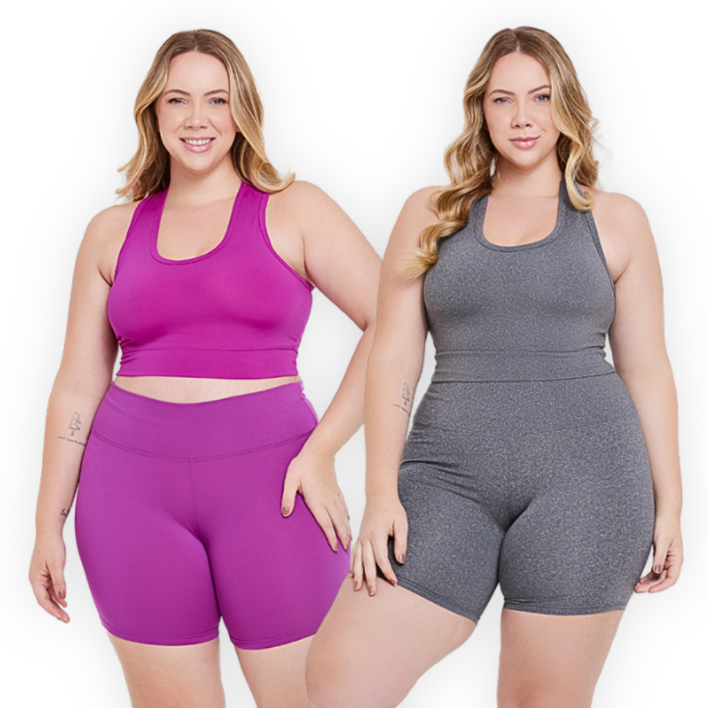 Kit 2 Conjuntos Top Nadador + Bermuda Plus Size Academia Suplex